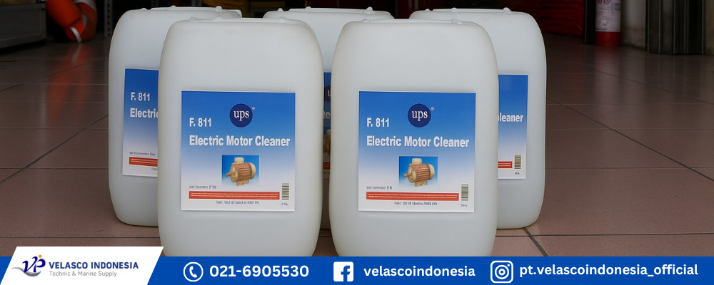 Motor listrik kapal memerlukan perawatan yang cermat untuk menjaga efisiensinya di lingkungan laut yang keras. Electric Motor Cleaner UPS hadir sebagai solusi aman dan efektif dengan formula non-konduktif, cepat menguap, dan bebas residu. Sebagai supplier terpercaya di Jakarta, PT. Velasco Indonesia Persada jual Electric Motor Cleaner untuk kapal berkualitas dari merk UPS dalam kemasan 5 liter dan 20 liter, siap digunakan untuk kapal, galangan, maupun industri.
