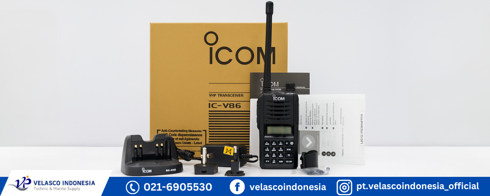 Dalam dunia pelayaran modern, komunikasi yang cepat, stabil, dan akurat adalah salah satu faktor utama dalam memastikan keselamatan dan kelancaran operasi kapal. Setiap instruksi, baik untuk manuver, bongkar muat, hingga evakuasi, harus bisa tersampaikan dengan jelas tanpa terhambat jarak, cuaca buruk, atau kebisingan mesin kapal. Karena itu, keberadaan HT marine berkualitas menjadi perangkat vital di atas kapal. kami Jual COM IC-V86 Original Salah satu perangkat komunikasi yang banyak digunakan dan terbukti andal adalah ICOM IC-V86, HT VHF kelas profesional yang dirancang untuk menghadapi kondisi kerja berat di laut. Dengan daya pancar besar, audio super kuat, serta ketahanan fisik kelas militer, IC-V86 menjadi solusi ideal untuk segala jenis kapal. Sebagai penyedia alat keselamatan dan komunikasi kapal terpercaya, PT. Velasco Indonesia Persada jual ICOM IC-V86 original dan bersertifikat untuk memenuhi kebutuhan industri maritim Indonesia.