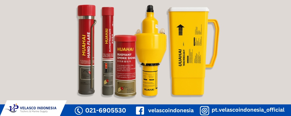 Keselamatan kapal di laut merupakan hal yang tidak bisa ditawar. Dalam situasi darurat seperti kecelakaan kapal, terjatuh ke laut, kebakaran, atau kebutuhan evakuasi mendesak, alat piroteknik menjadi komponen vital yang berfungsi sebagai sinyal penyelamatan. Salah satu produsen alat piroteknik maritim terkemuka di dunia adalah Huahai, sebuah merek asal Tiongkok yang telah terbukti andal dan memenuhi standar internasional seperti SOLAS dan IMO. Sebagai supplier alat piroteknik Huahai terlengkap di Indonesia, PT. Velasco Indonesia Persada menyediakan berbagai macam alat piroteknik dari brand Huahai untuk menunjang kebutuhan keselamatan kapal Anda. Kami melayani berbagai kebutuhan pelayaran, baik untuk kapal niaga, kapal penumpang, kapal kargo, maupun proyek-proyek pelabuhan dan perikanan.