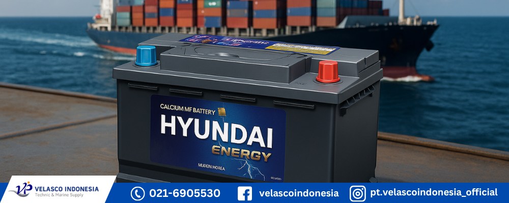 Hyundai juga menjadi pilihan utama banyak operator kapal di Indonesia. PT. Velasco Indonesia Persada menyediakan aki Hyundai tipe kering (kering/maintenance free) dengan teknologi terbaru yang minim perawatan.